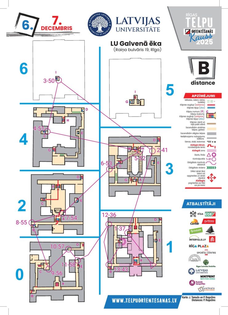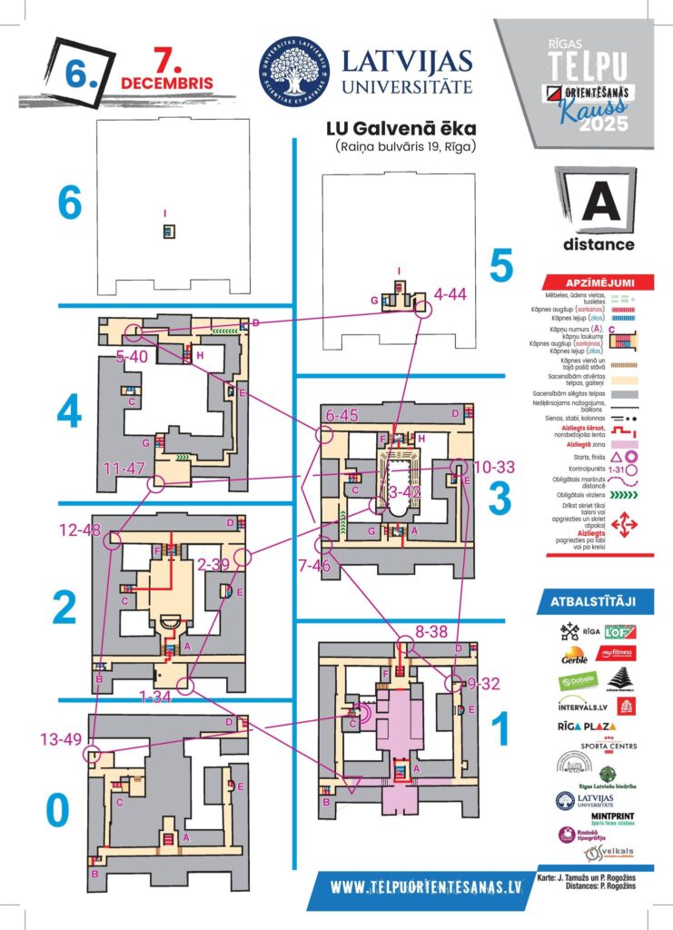Dalībniekiem bija jāveic divas distances – A un B, pārvarot daudzās kāpnes un koridori līdz pat 6. stāvam un atrodot pareizos kontrolpunktus. Šogad kartē bija jauninājums – kāpņu attēlošana ar krāsām: