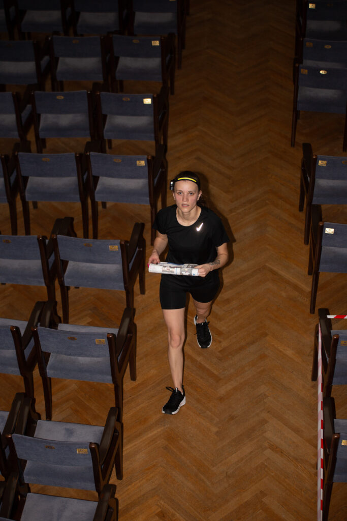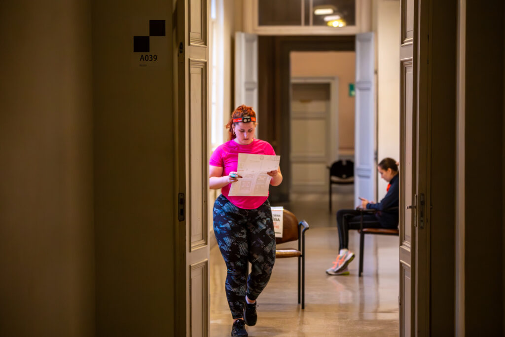 Tas sarežģīja uzdevumu, jo papildus orientēšanās prasmei bija jāseko līdzi arī tam, vai kāpnes konkrētajā stāvā nav bloķētas, citas bija sadalītas uz pusēm.