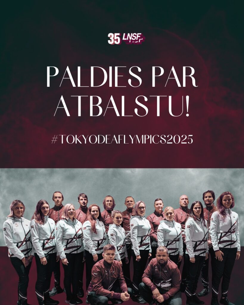 Latvijas Nedzirdīgo sporta federācija sirsnīgi pateicas par 2025. gadā sniegto atbalstu, kas deva iespēju mūsu sportistiem piedalīties un ar lepnumu pārstāvēt Latviju 25. Vasaras Nedzirdīgo olimpiskajās spēlēs.